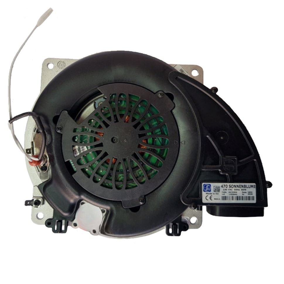 Вентилятор з пальником у зборі Ferroli 39846780 (заводський код 39846061) - це інтегрований функціональний модуль системи спалювання Premix (попереднього змішування). Вузол складається з модулюючого вентилятора постійного струму, газового колектора та пальника з нержавіючої сталі. Така конструкція забезпечує ідеальне співвідношення газу та повітря перед подачею на пальник, що дозволяє досягти максимального ККД конденсації та стабільної роботи котла на низьких потужностях.